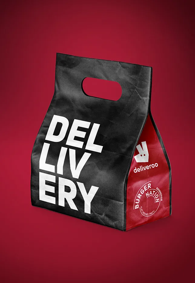 Printed restaurant packaging, black restaurant branded packaging, Printed burger delivery packaging, nonfacture design